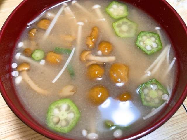 私の好きなオクラなめこエノキの味噌汁 レシピ 作り方 By 松潤love