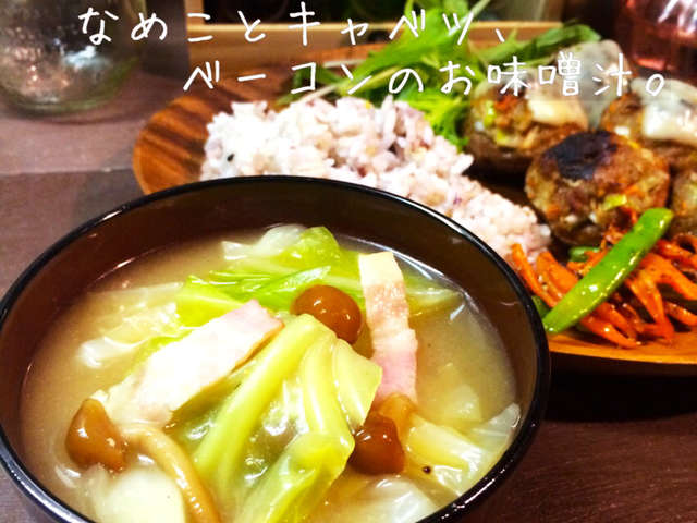 なめことキャベツ ベーコンのお味噌汁 レシピ 作り方 By Shinke