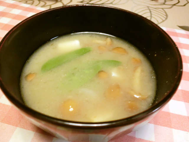 スナップエンドウとなめこの味噌汁 レシピ 作り方 By ちゅうさんの家