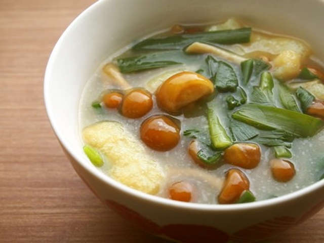株とりなめこ ニラのお味噌汁 レシピ 作り方 By 京たまご