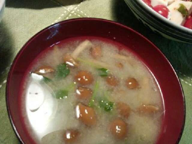 なめこ 味噌汁 豆苗