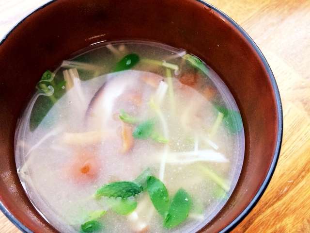 豆苗となめこのお味噌汁 小児はりきゅう師なおみん