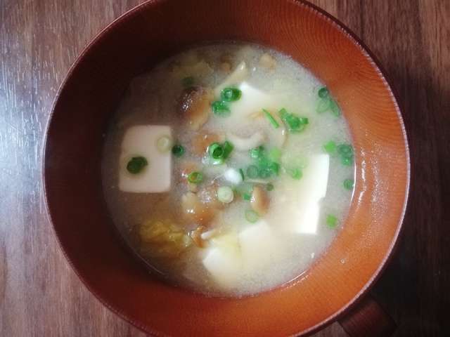 マイタケ 豆腐 なめこ 白菜の味噌汁 レシピ 作り方 By 松潤love