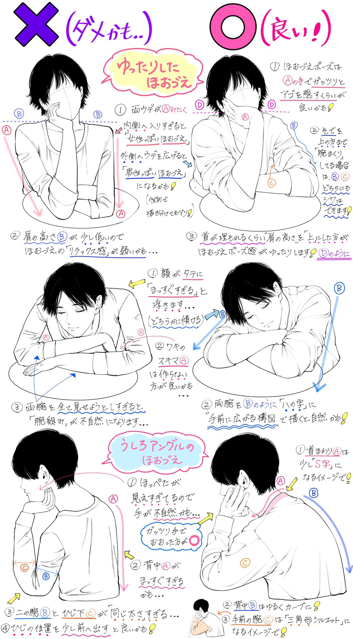 吉村拓也 イラスト講座 On Twitter ほおづえポーズの描き方