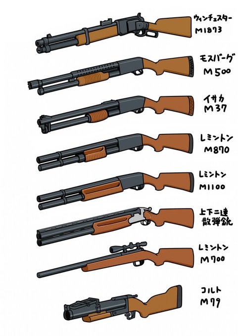 興味がない人が見たら全部同じに見えるであろう不思議な銃のイラスト