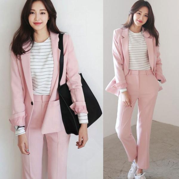 2点セット スーツ レディース ピンク 通勤おol パンツスーツ 韓国風