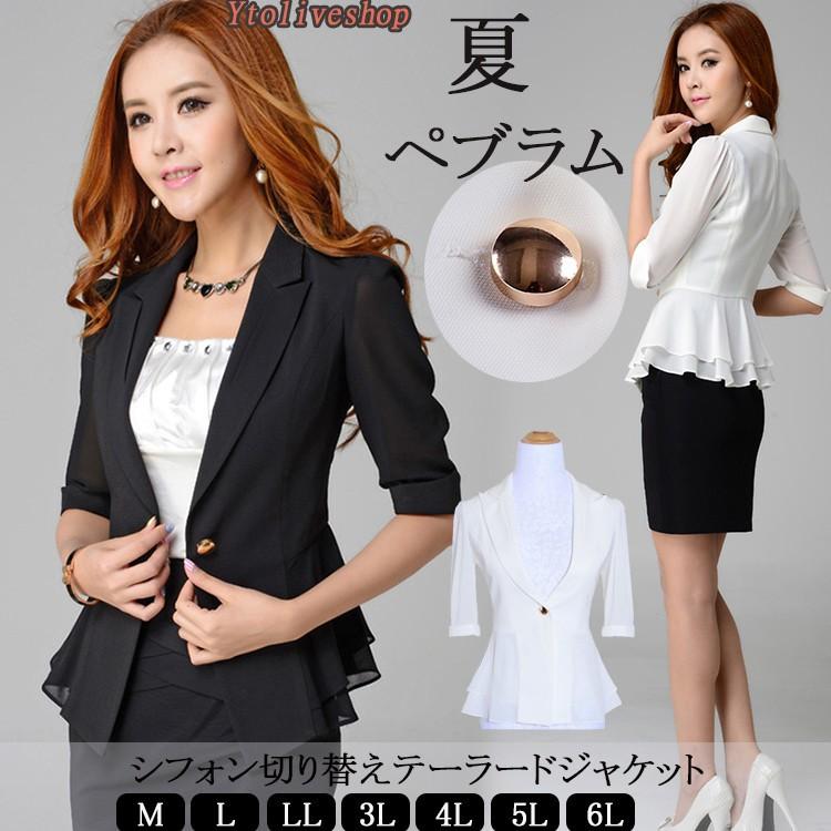 通勤ジャケット テーラード ペプラム 5分袖 シフォン レディース