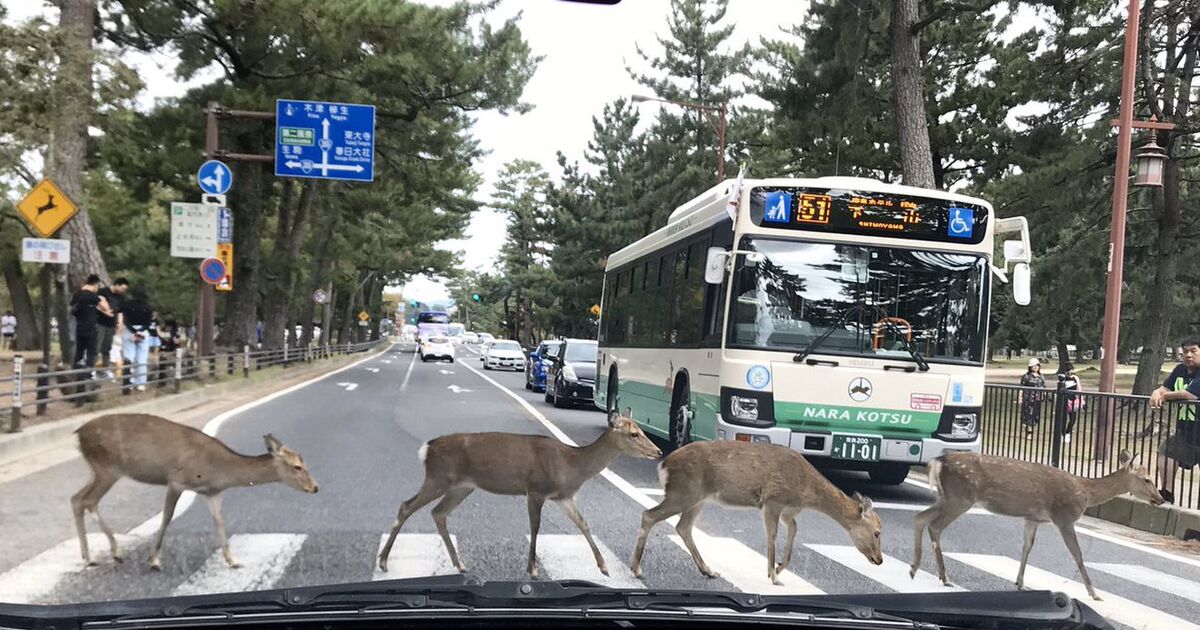 アビーロードは奈良にもあった 横断歩道を渡る4頭のシカが