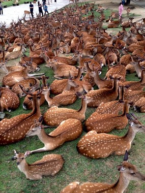 奈良 一面鹿だらけ 夏の風物詩 鹿だまり って知ってる 何頭いる