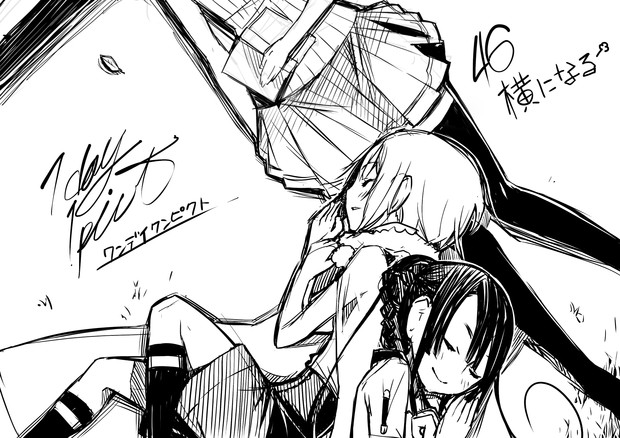 1day1pict 46 横になる ニコ生企画 ごま さんのイラスト