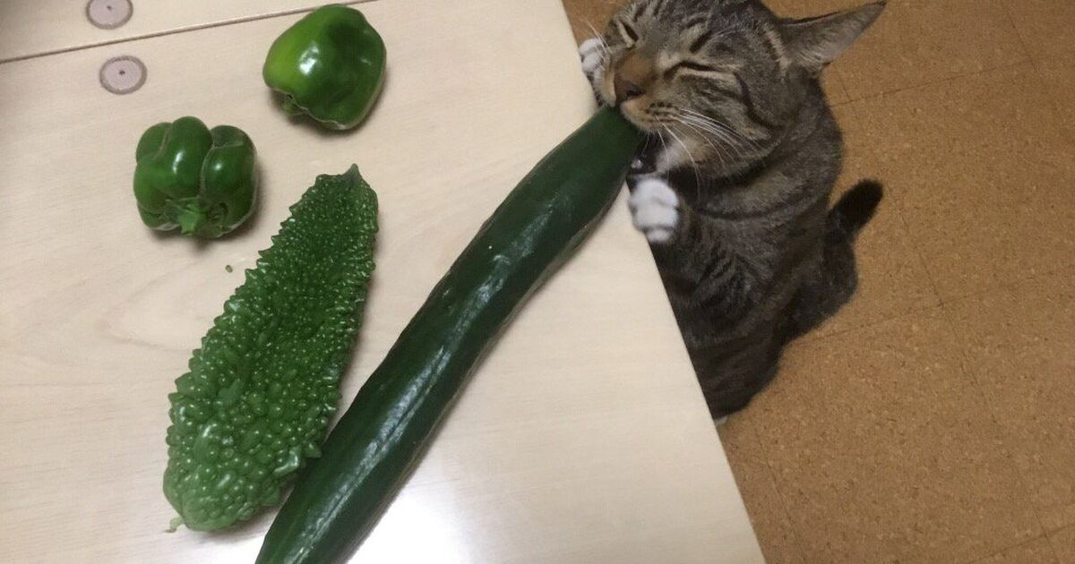 猫がキュウリをもりもり食べる動画が話題 猫って草食だったか
