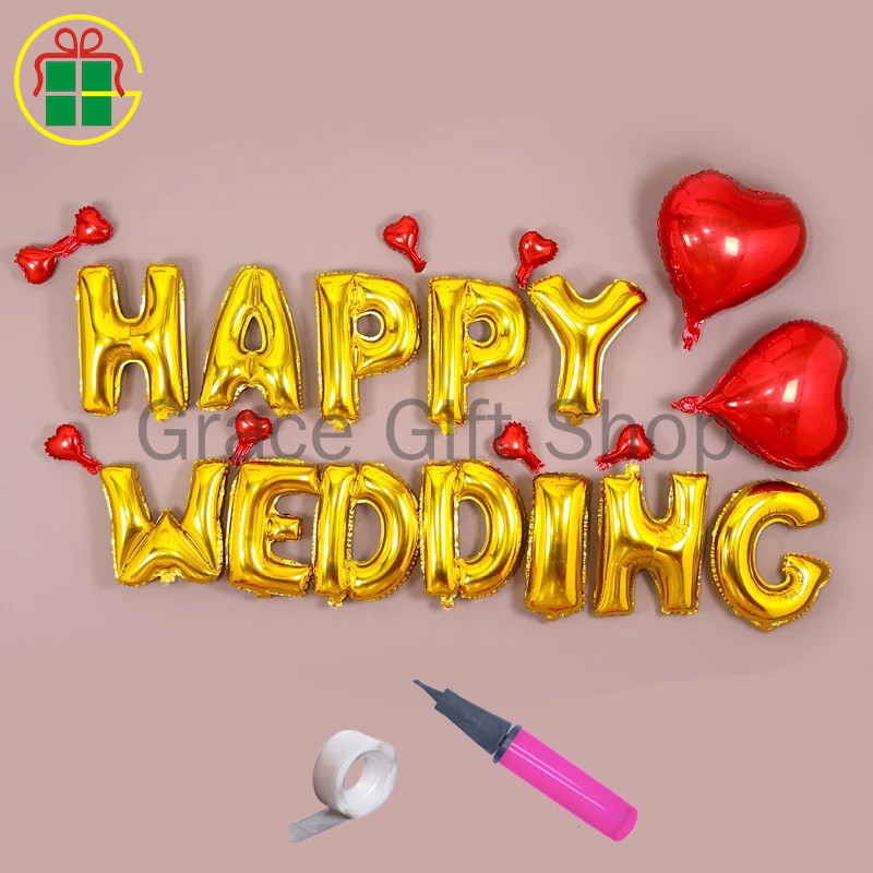 1 Set Diy Party Decoration Happy Wedding Word Balloon Room Suprise