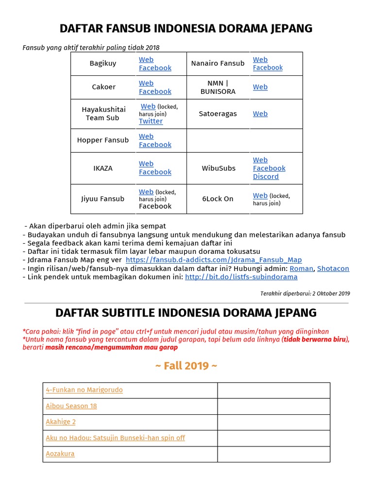 Daftar Fansub Dan Subtitle Indonesia Dorama Jepang